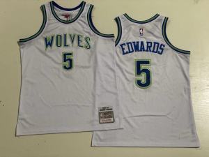 2023-2024 M&N Wolves Edwards #5 Retro Top Quality Dense Embroidery NBA Jersey